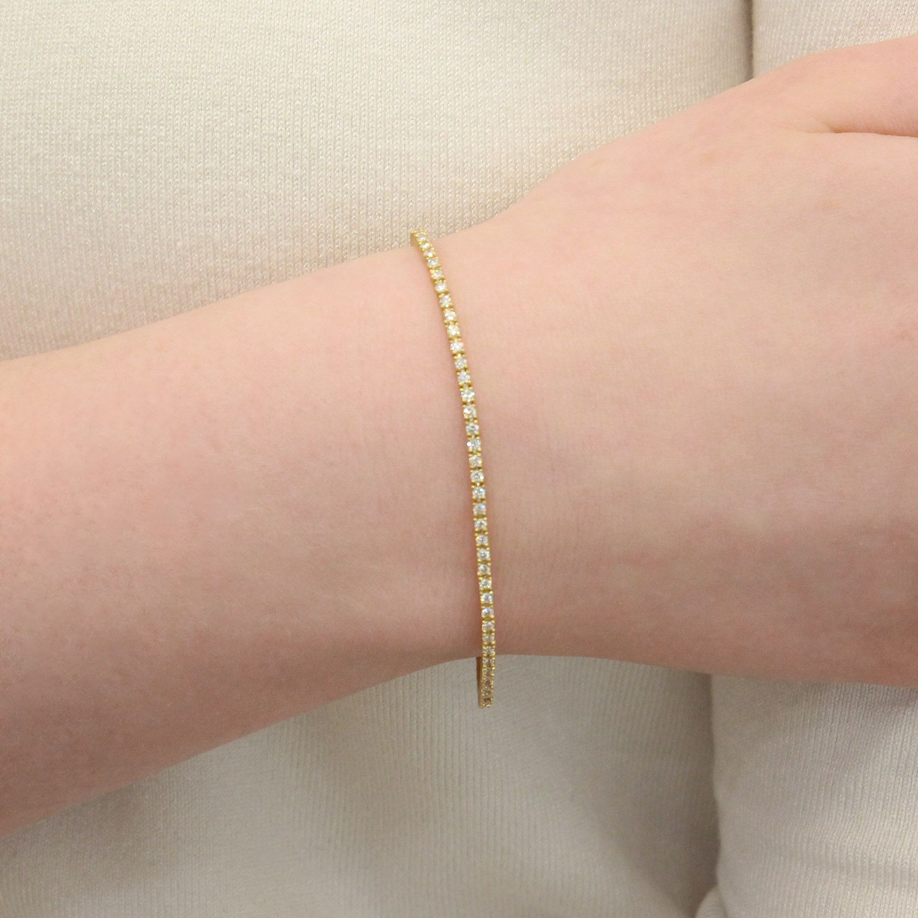1.37 carats of diamonds wrap across the wrist in this 14k yellow gold bracelet. A classic style, tried and true.