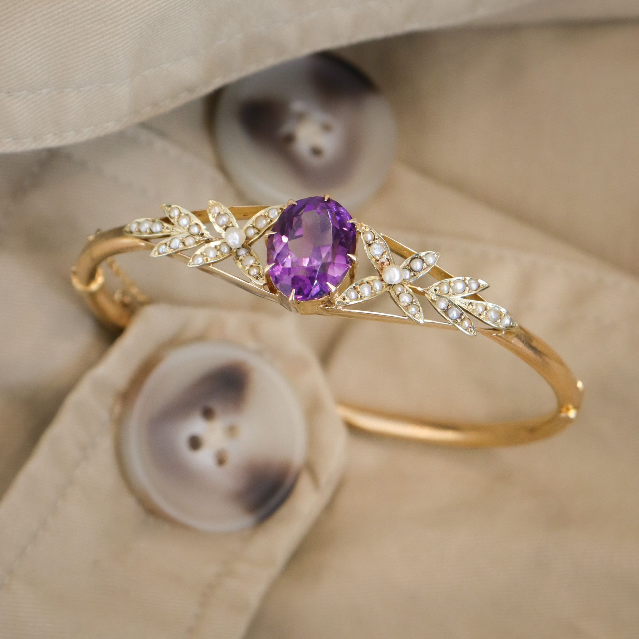 14ky Victorian Amethyst & Seed Pearl Bangle