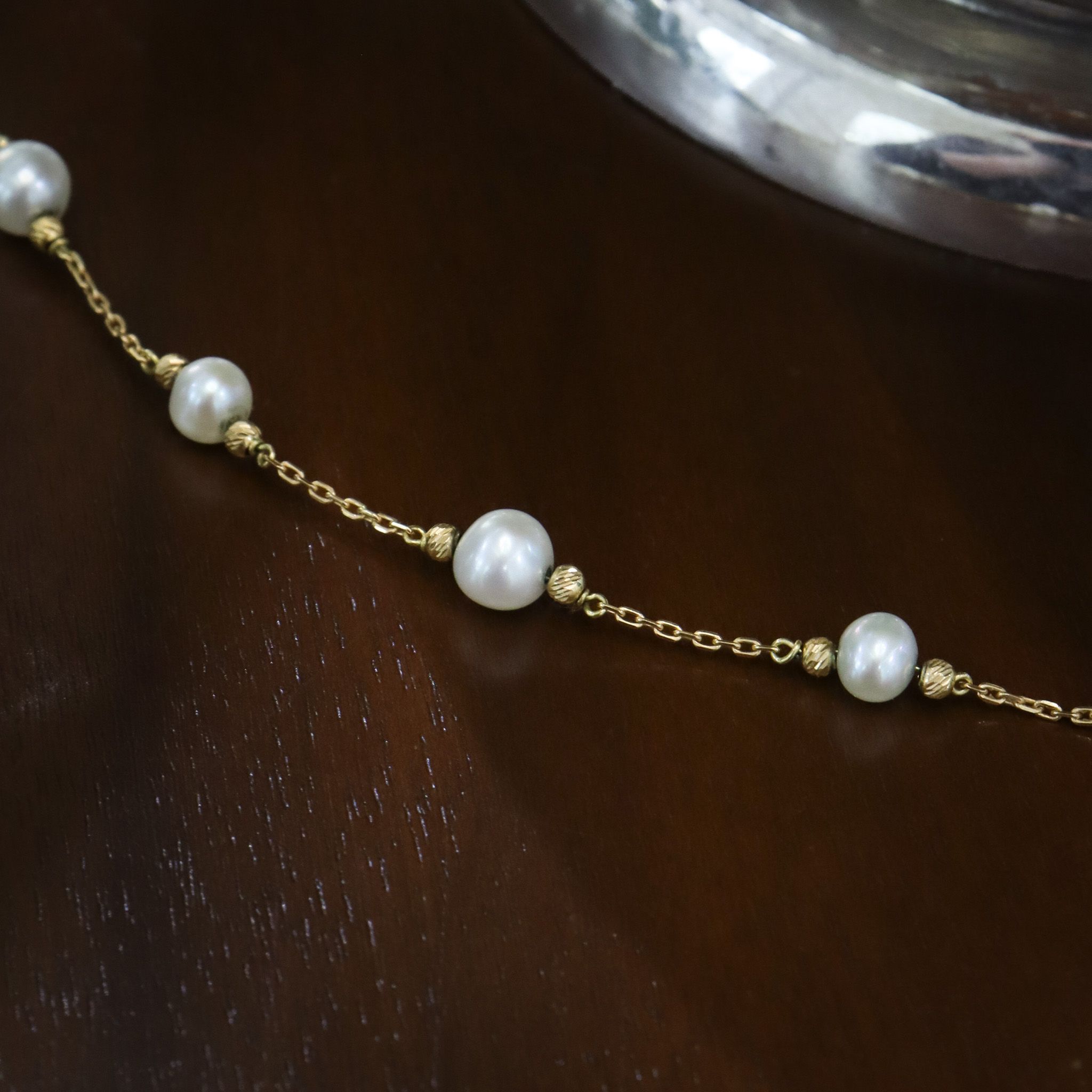 18ky Stationary Pearl Bracelet