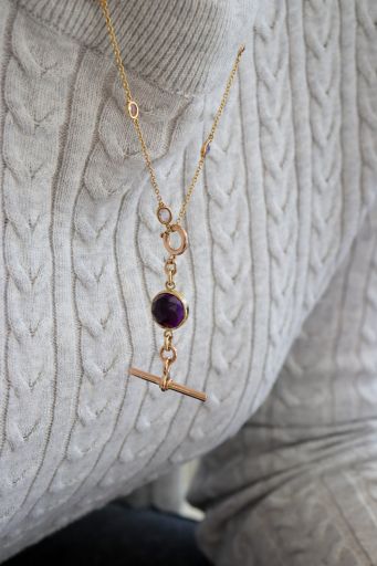 This juicy rose-cut amethyst sits in a buttery 18k yellow gold setting and is extended by a large 10k rosy-yellow gold antique spring ring and T-bar. A bold pop of colour and versatile addition to your collection; this can be used as a chain extender, pendant, bag charm - get creative with it!