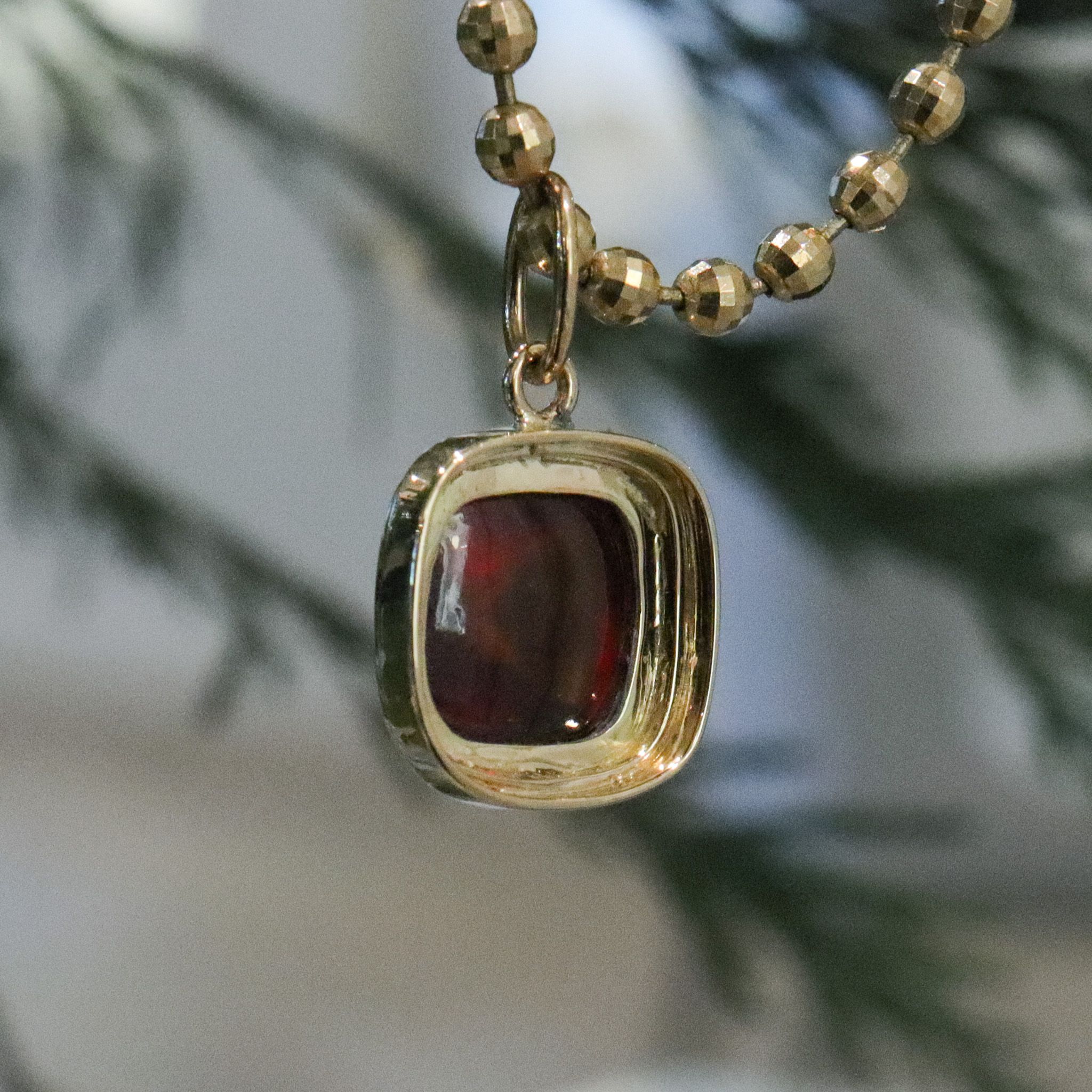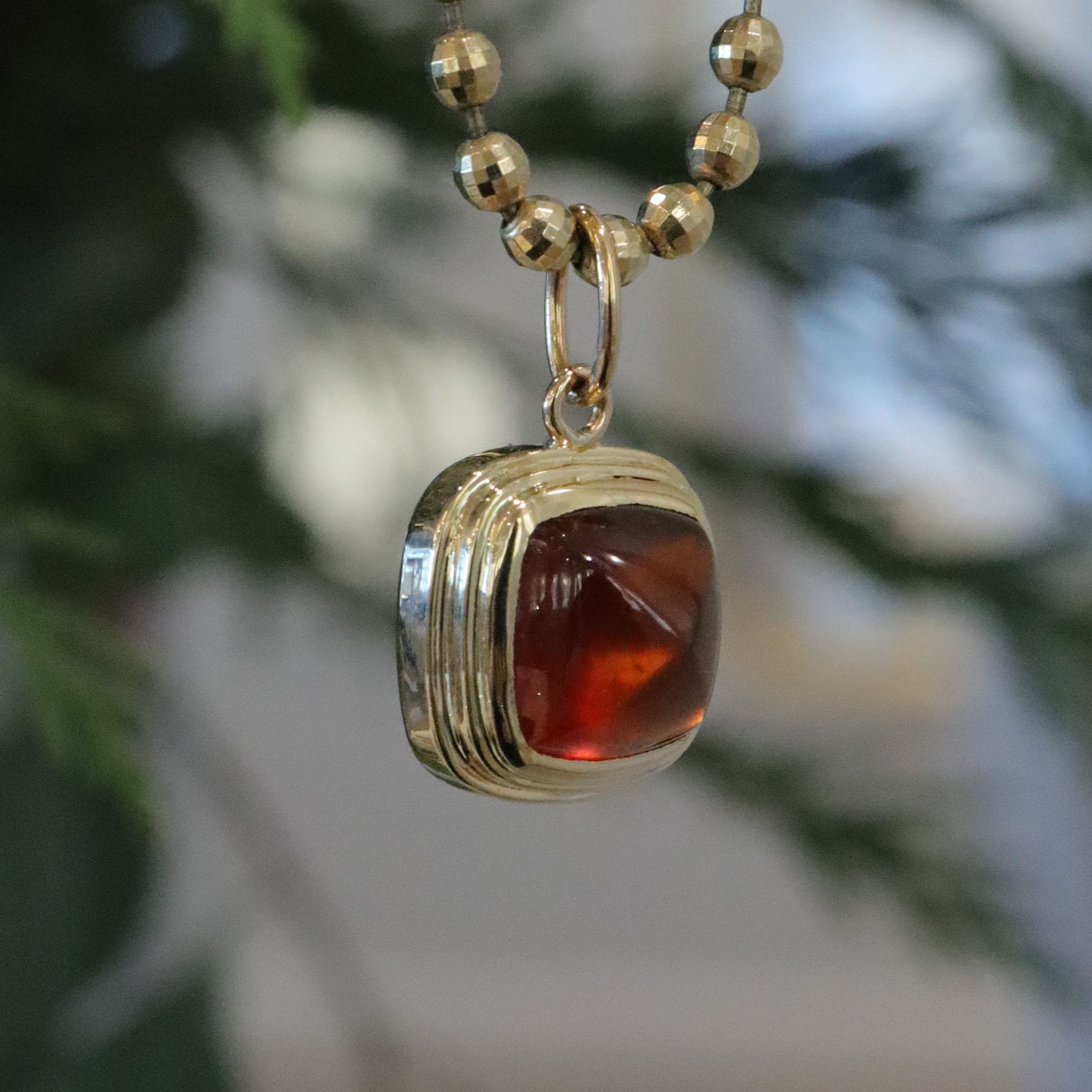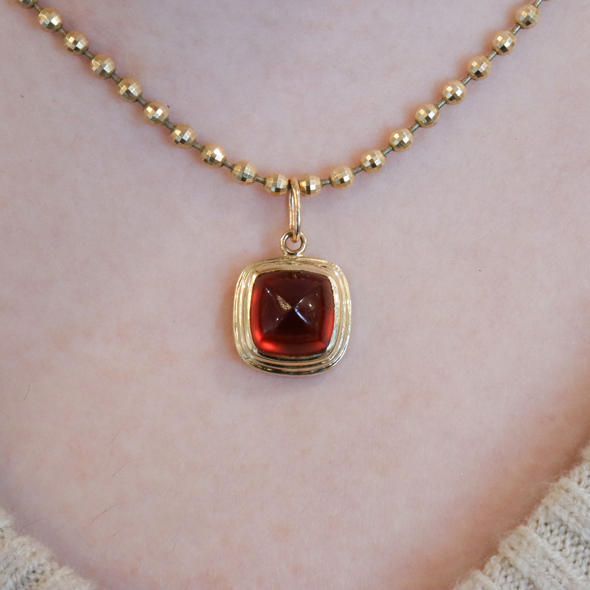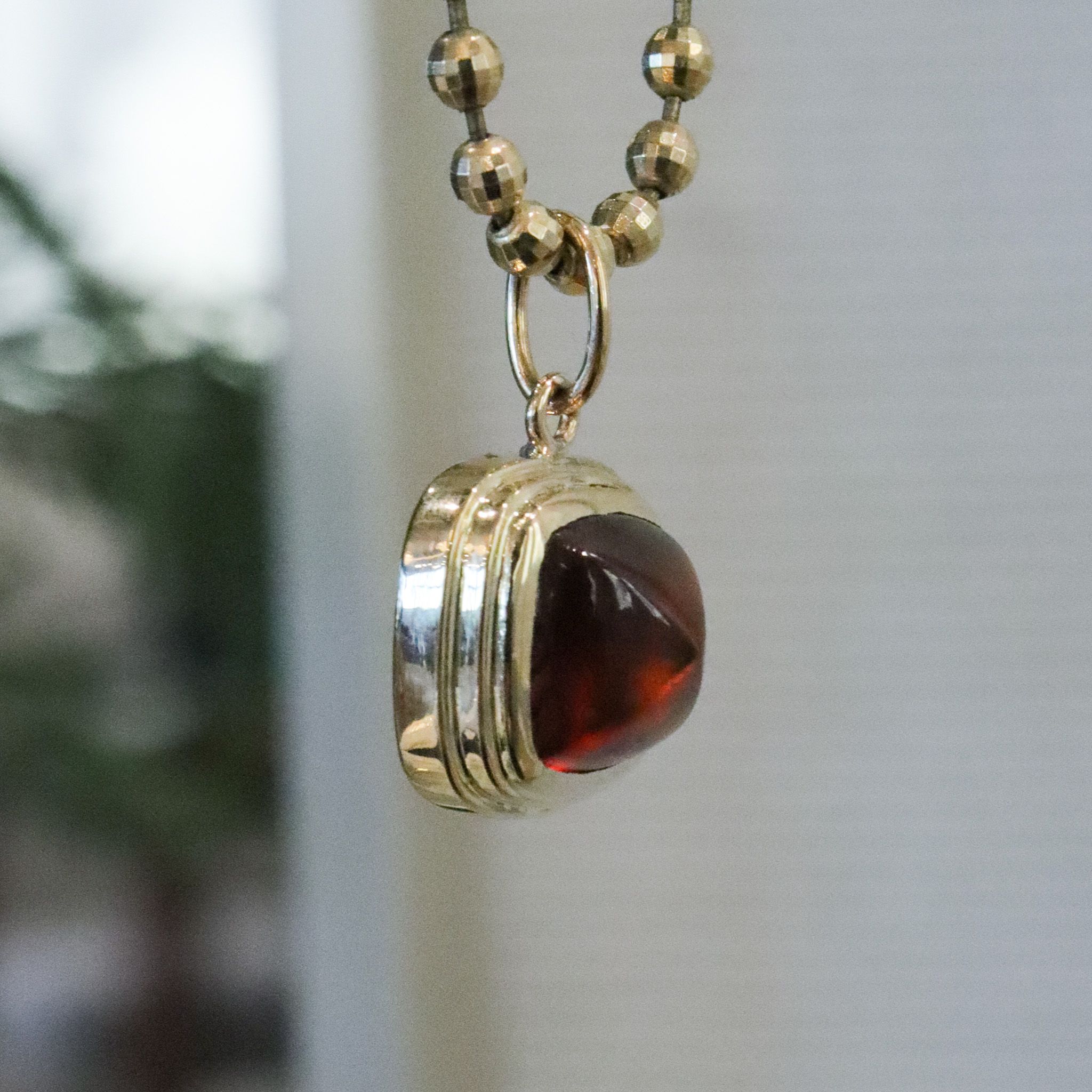 This rich deep red sugar-loaf garnet set in buttery 18k yellow gold offers its wearer a sense of warmth, solitude, and quiet confidence.