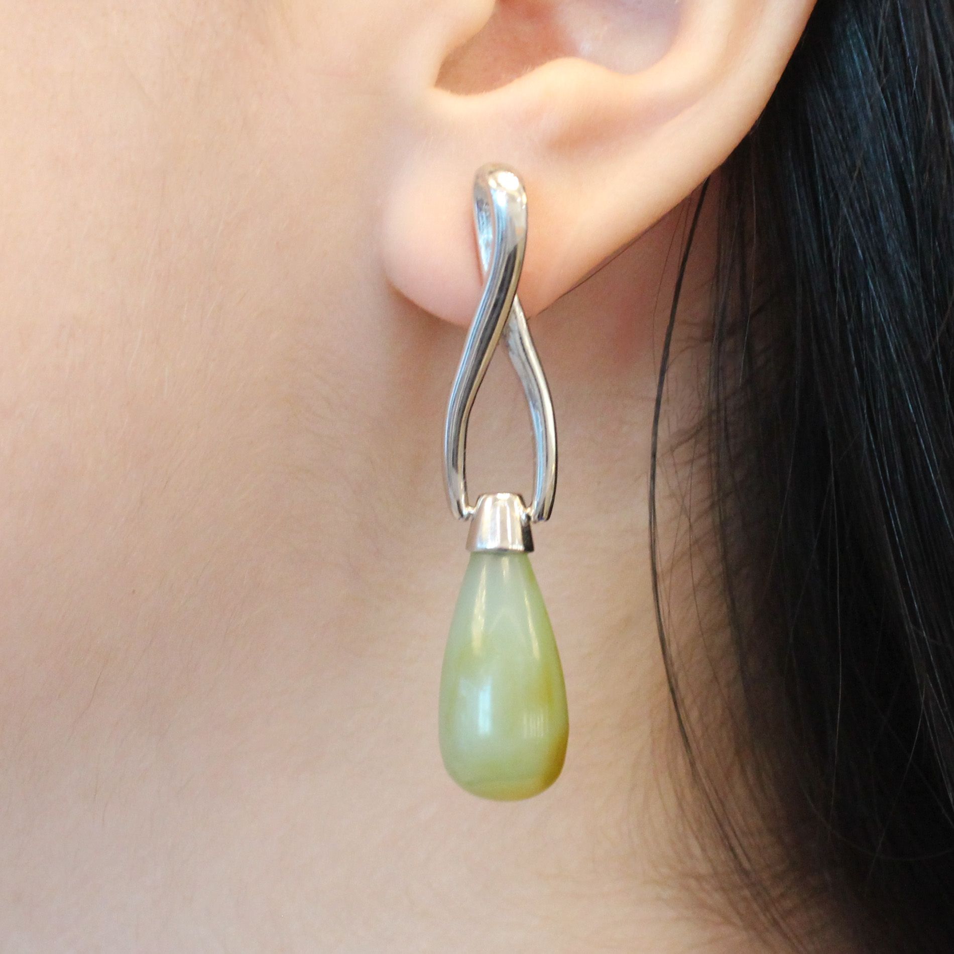 A very cool pair of Peruvian twist oval drops. Made for Birks, these earrings are beautifully modern, with a clean chic line. The articulated drops give lovely movement to the earrings when the wearer turns their head. A classic piece that would wear wonderfully with any outfit.
