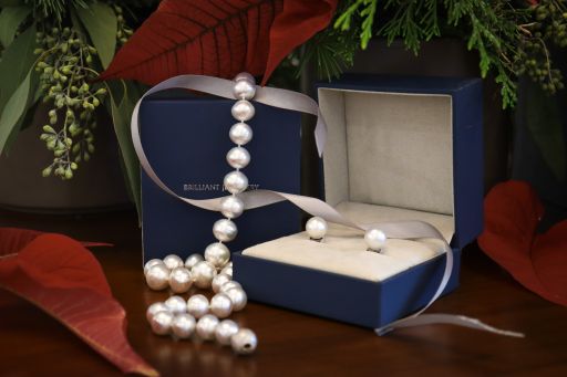 A beautiful strand of graduated, baroque south sea pearls with a cool silver tone. The clasp is an 18k white gold, textured ball. These pearls have a wonderful lustre & a lightly spotted surface. The graduated pearls complement a polished look for the professional but are so wearable in a causal setting. There's a reason every woman needs a strand of pearls, they are one of the most versatile pieces of fine jewellery.