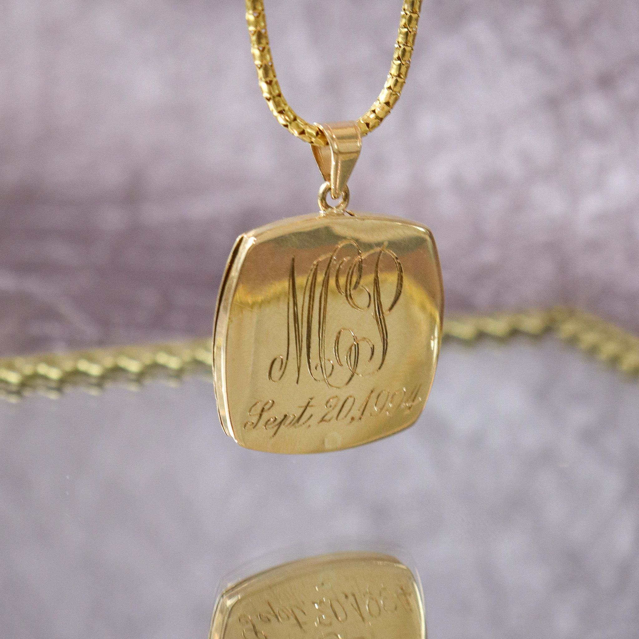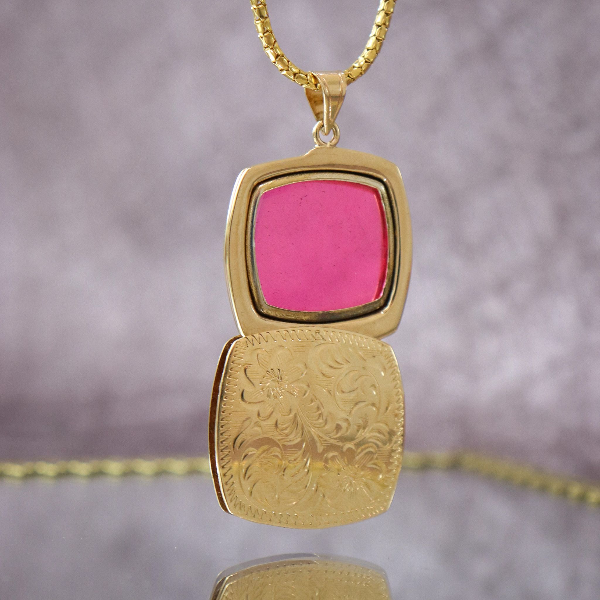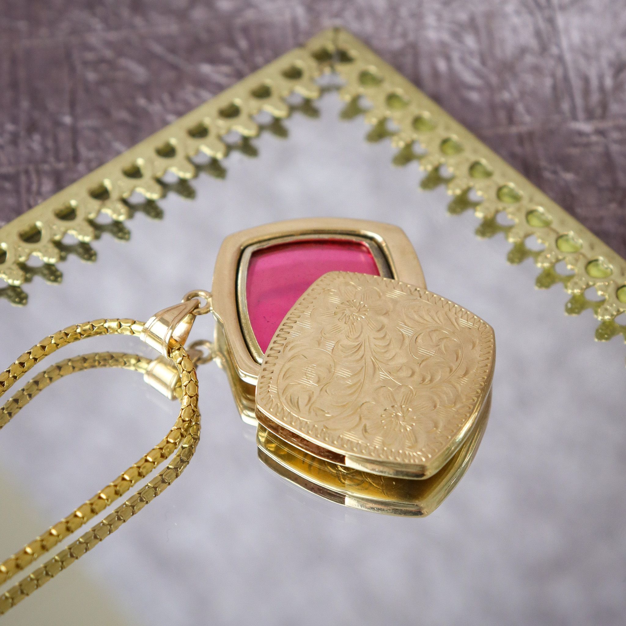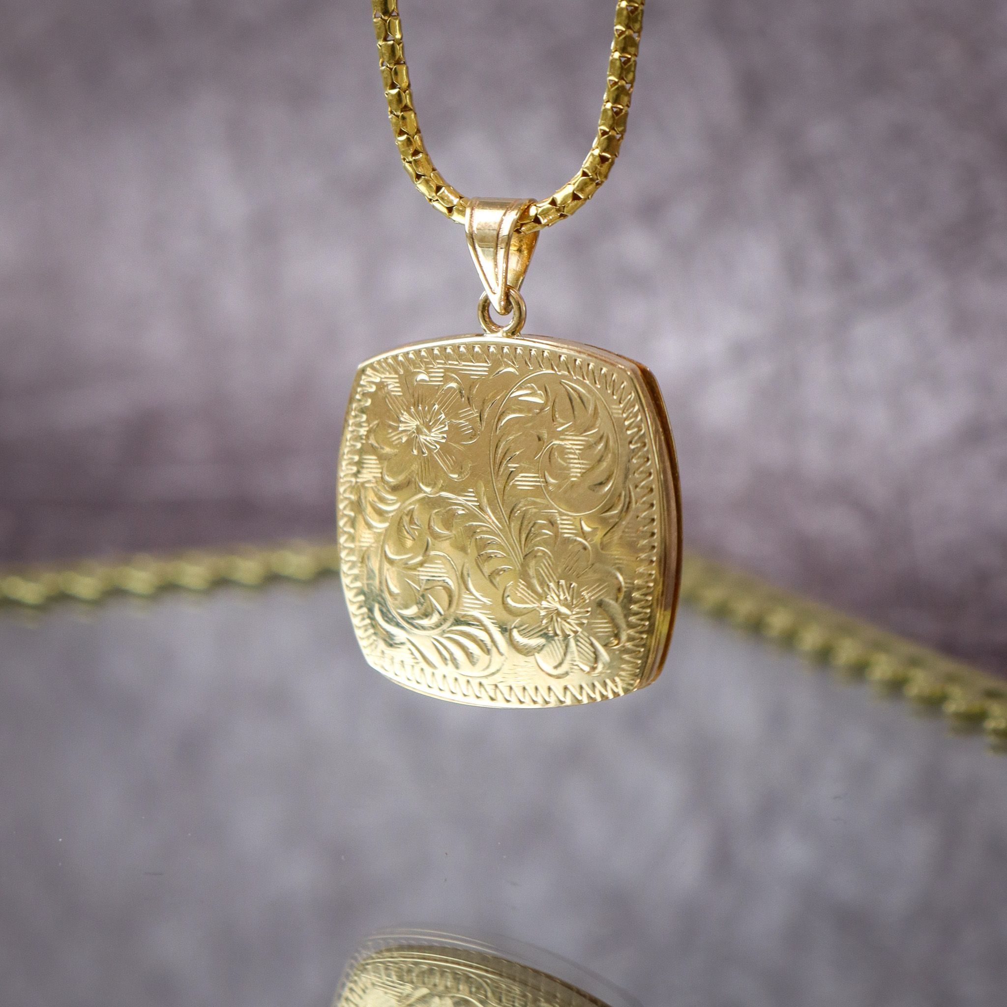 14ky Rounded-Square Sliding Floral Locket