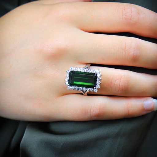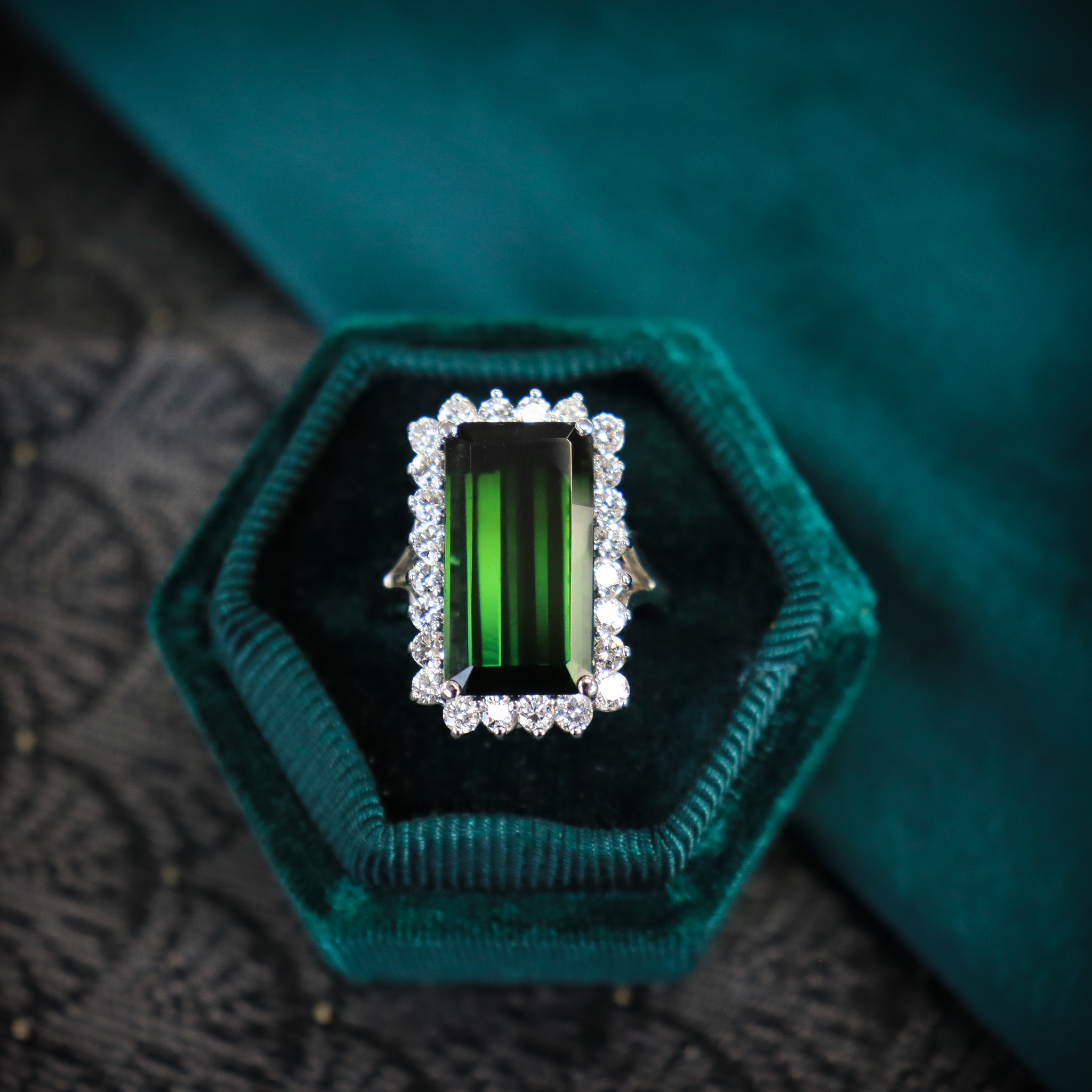 This ring came to us well worn & in need of our restoration & care. We liked the fabrication on the setting, we could see the skill of the original maker. The shank was worn thin so we gave it an upgrade, replacing the entire shank with 18k gold. Next came the tourmaline- it was badly abraded from years of wear. A re-cut & polish gave this stone a new life. This chunky, well made ring has been restored to new. The massive, moody, deep green tourmaline is a beautiful statement in a fabricated ring that deserves to be worn for another lifetime.