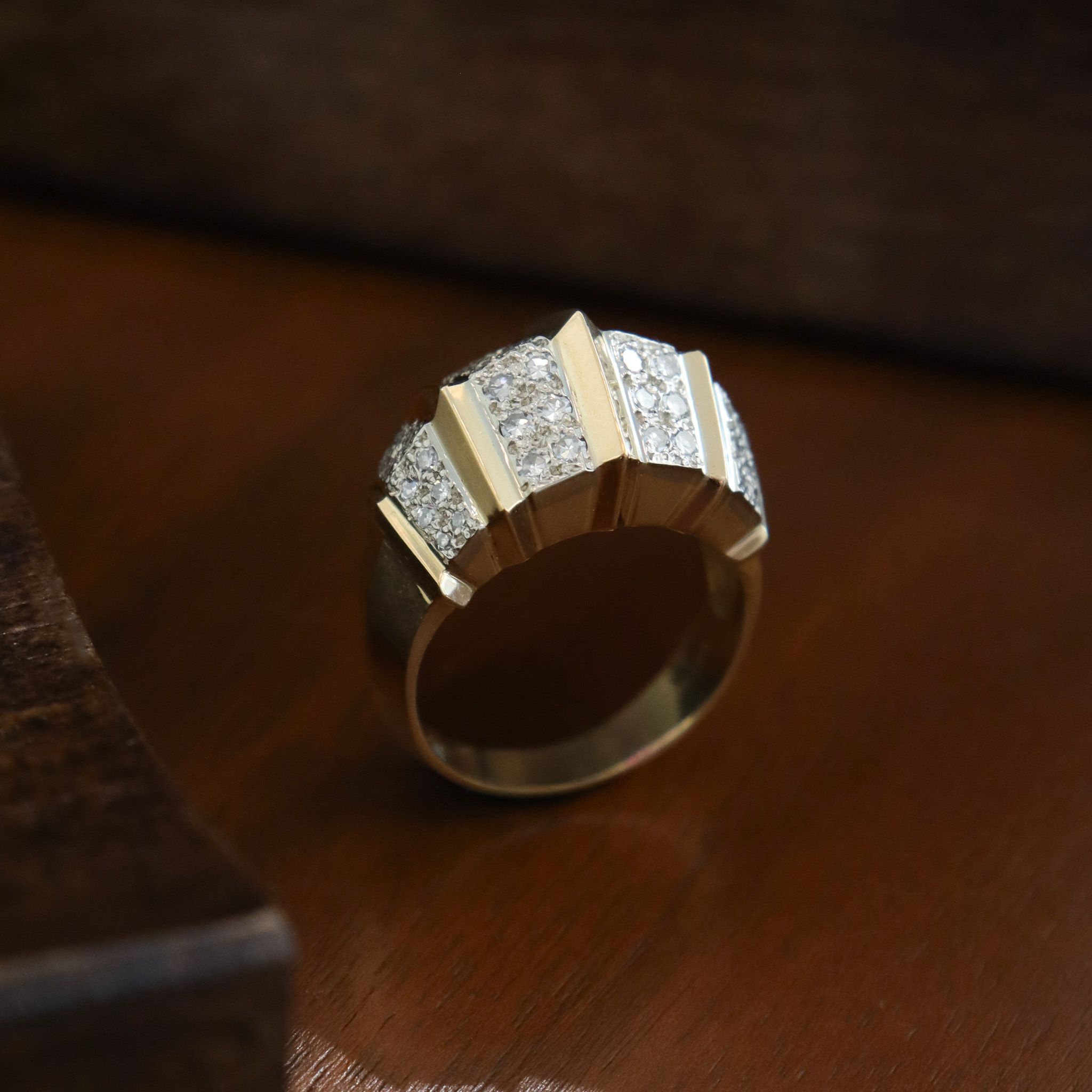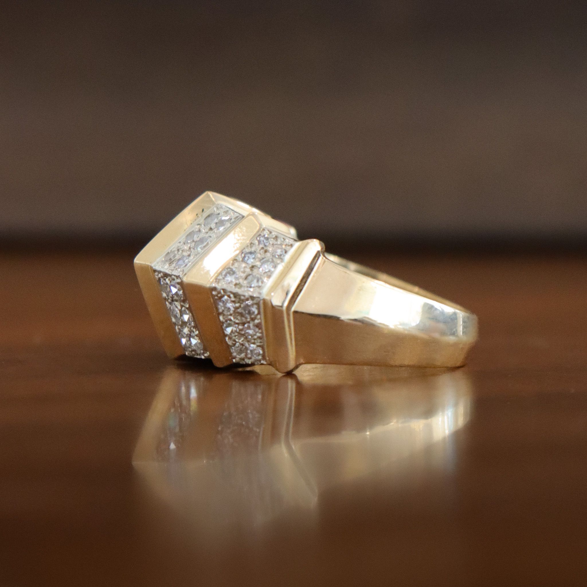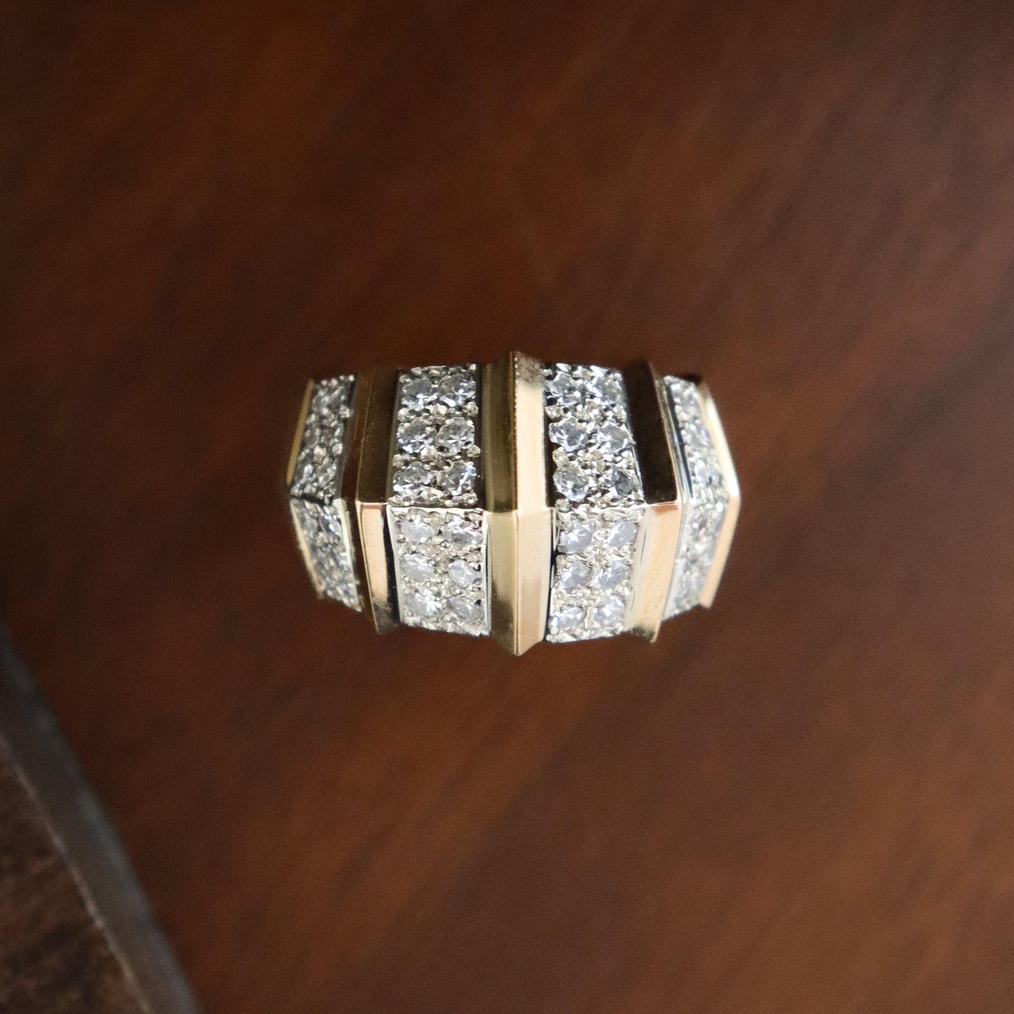 This vintage 14ky diamond Birks fashion ring is sure to catch your attention. Substantial, with generous finger coverage, this bold design offers a bold look and lots of sparkle.