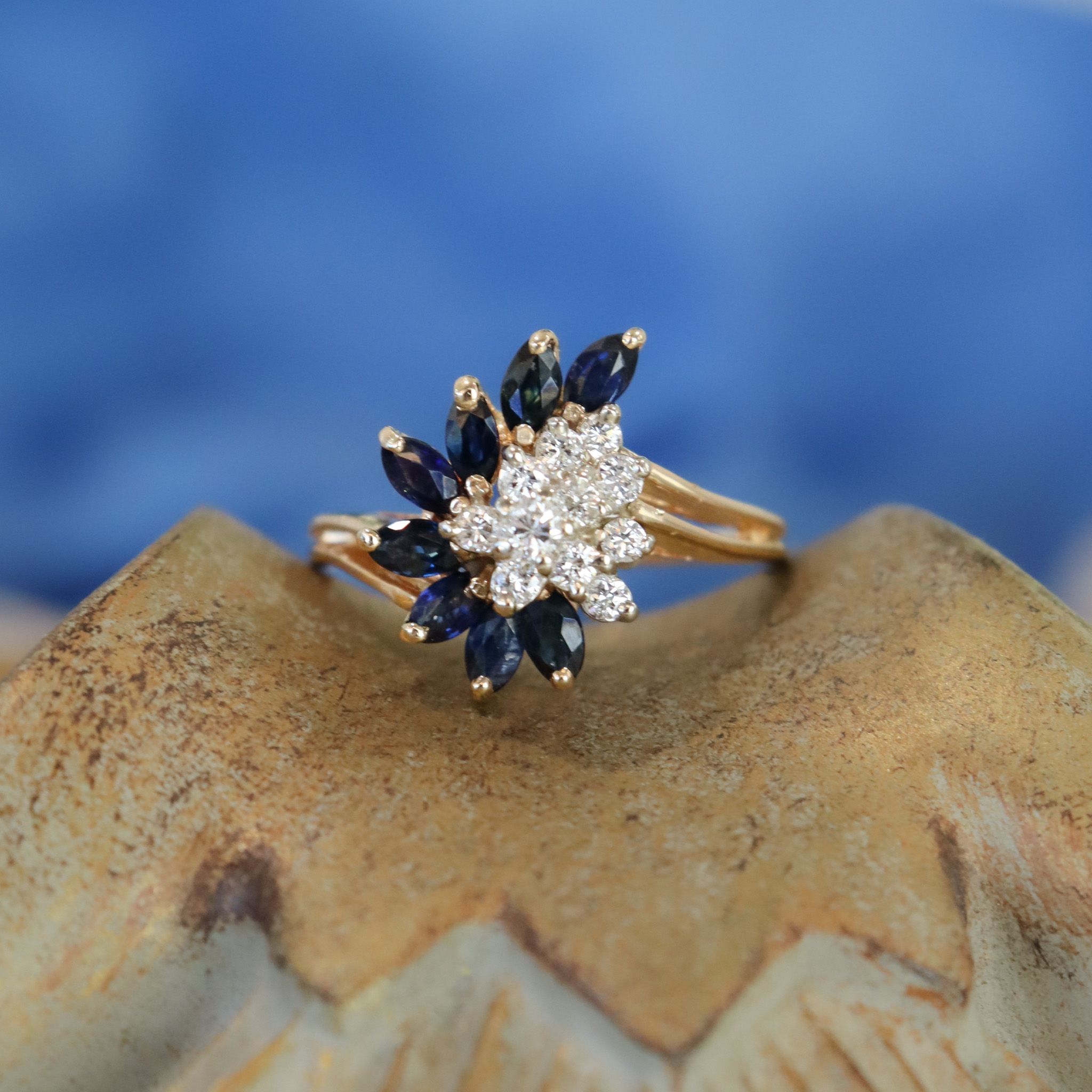 14ky Sapphire & Diamond Cocktail Ring