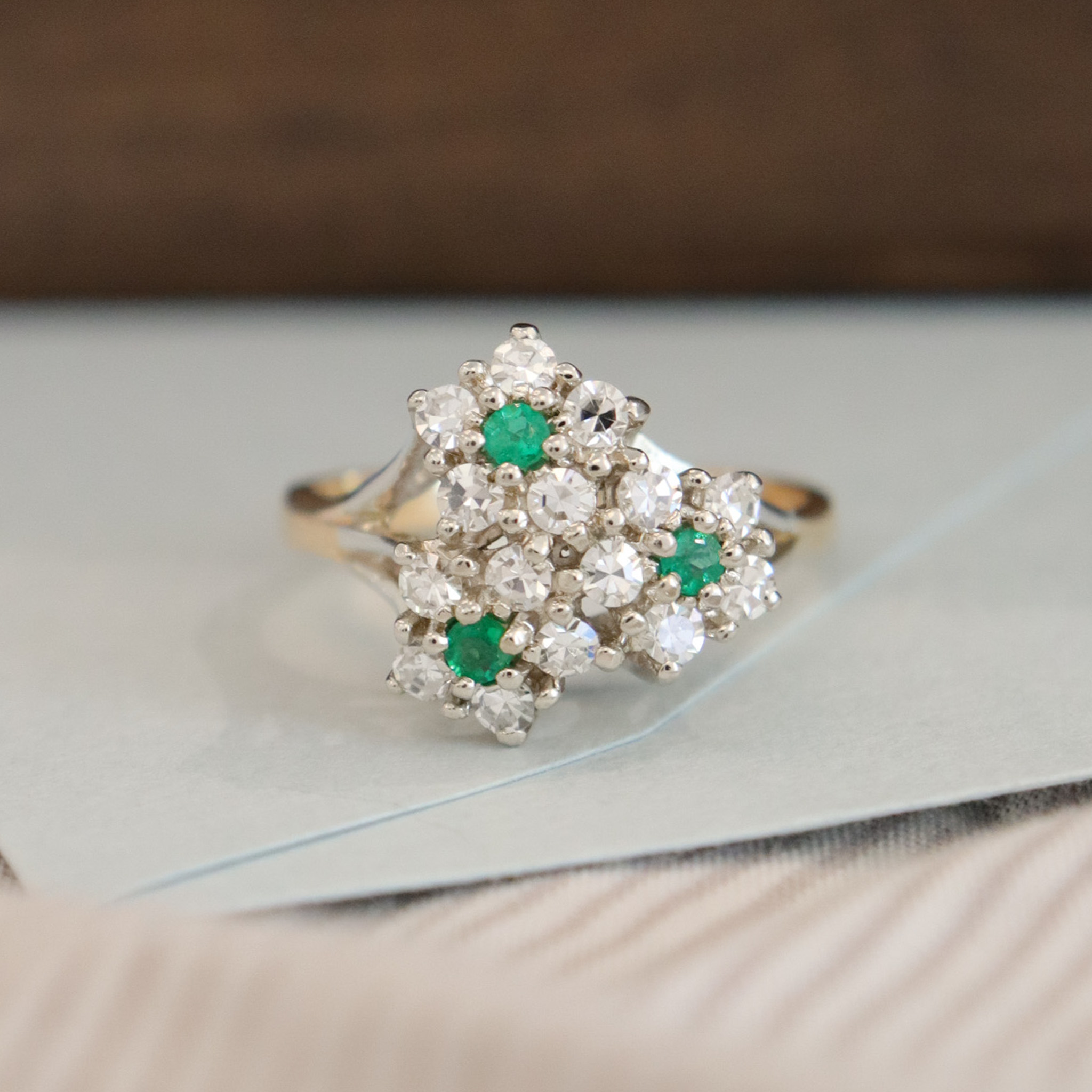 Dreaming of spring, this romantic beauty is a darling. Permanent flowers that will never fade, fashioned from emerald & diamonds.