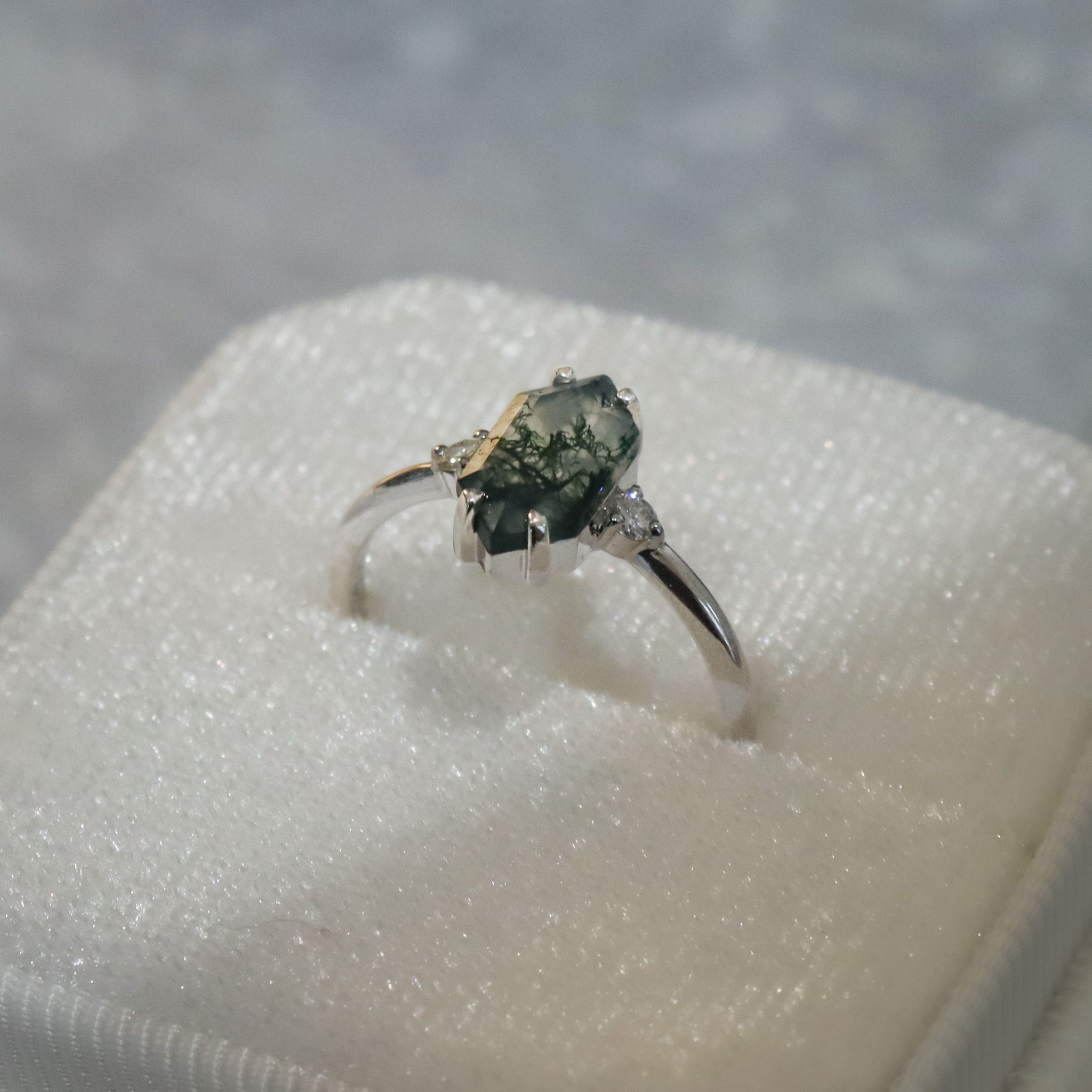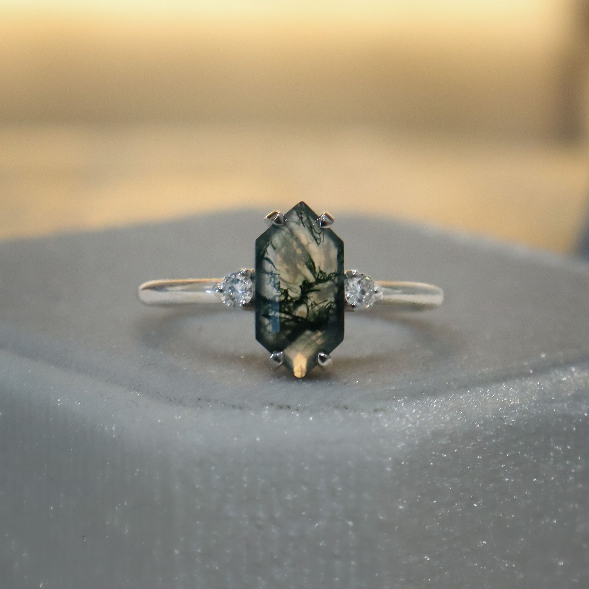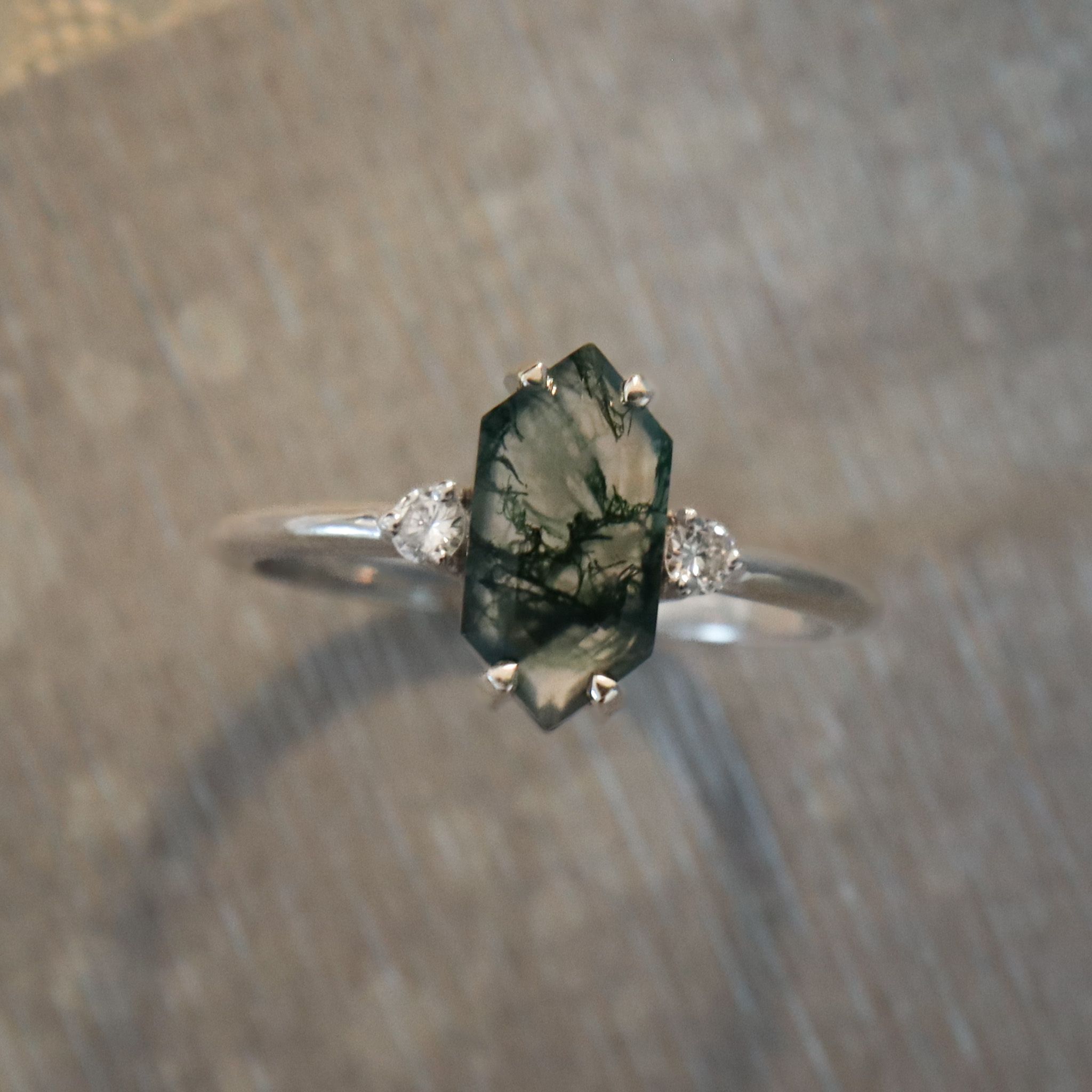 Elongated Hexagon Moss Agate, 0.06ct F VS Diamonds