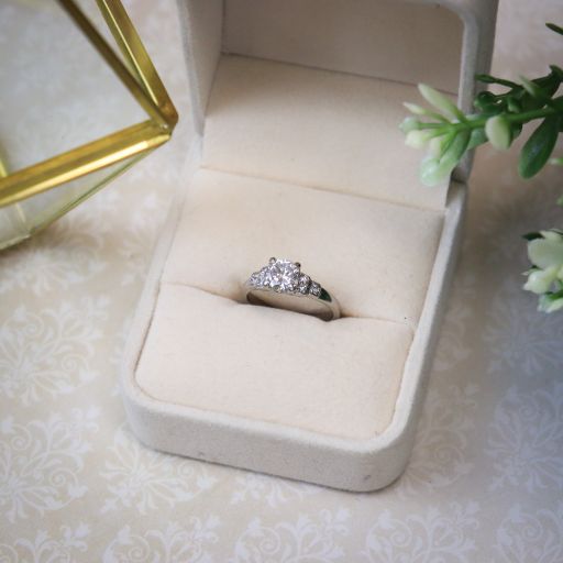 For you lovers of antique jewellery: this is the ring for you! A classic Art Deco platinum & diamond ring. Three diamonds flank each side of the centre stone, creating two sparkly steps towards the diamond.